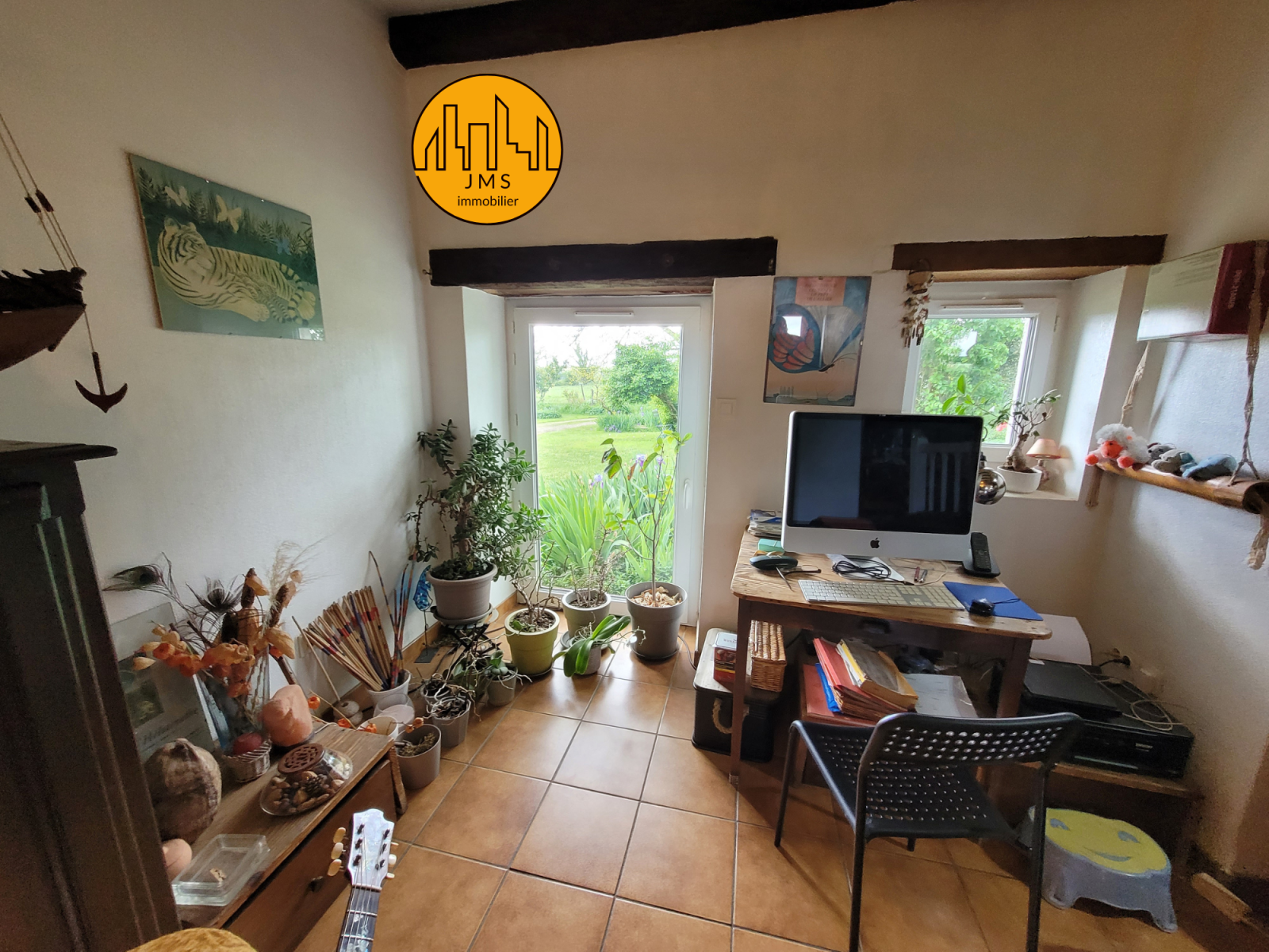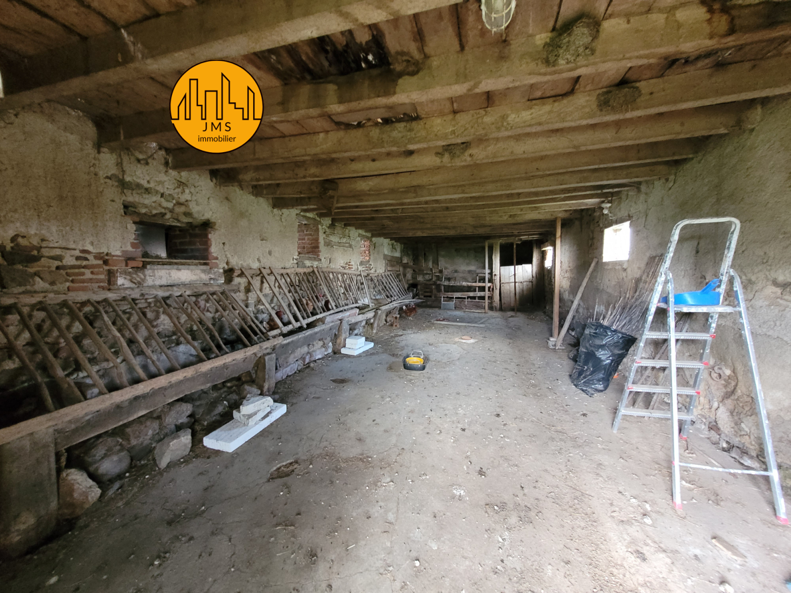 La partie habitation propose, une cuisine ouverte sur un grand séjour, 3 chambres, une salle de bain avec wc et grenier aménageable au-dessus,